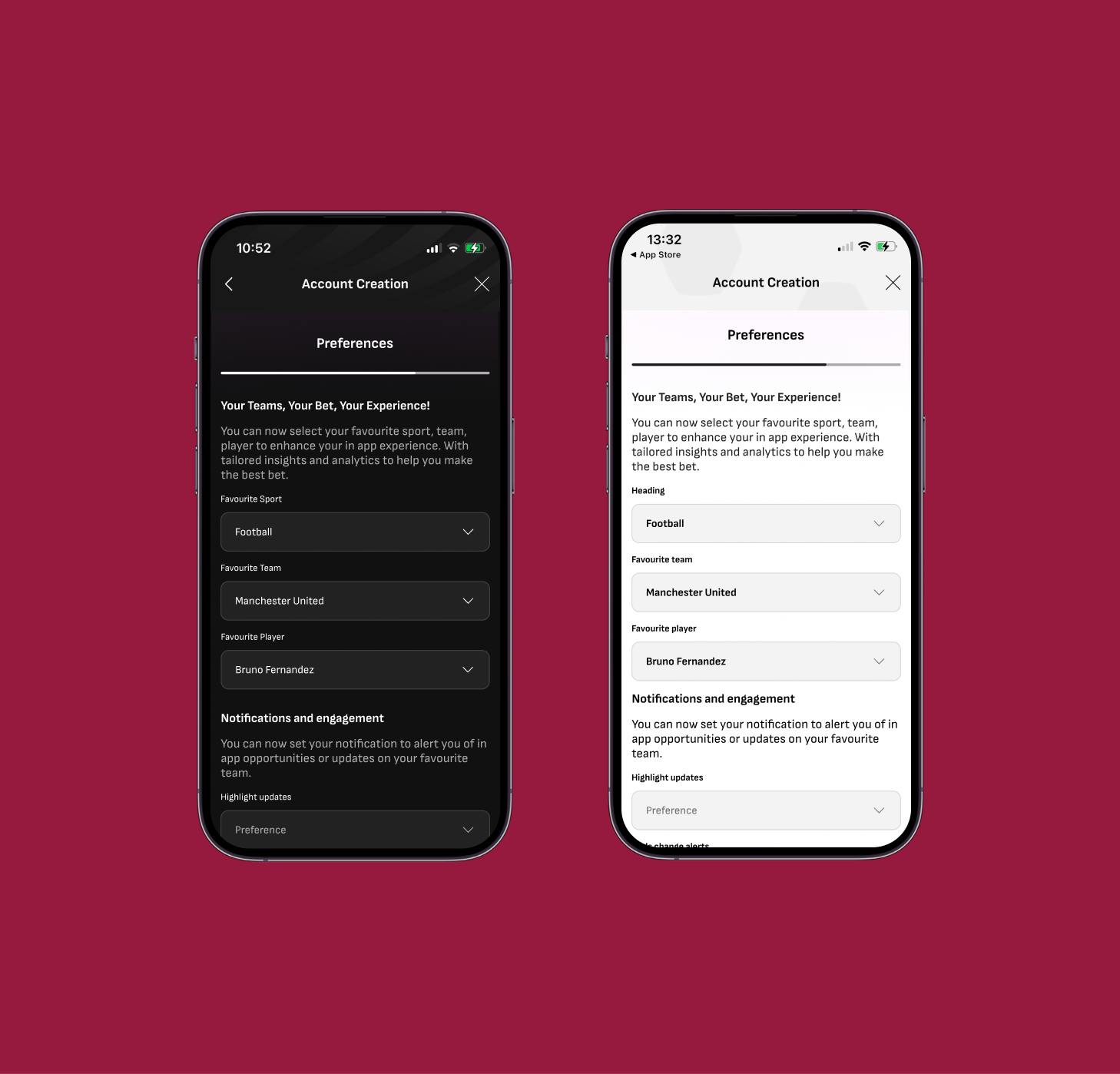 I focused on tailoring the matchday experience in the LiveScore Bet app by designing an onboarding journey that captures user preferences. By allowing fans to personalise their favourite teams, leagues, and notification settings from the start, the app delivers a more relevant, engaging, and immersive experience throughout pre-match anticipation, live gameplay, and post-match reflection.