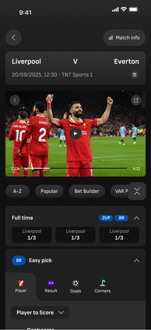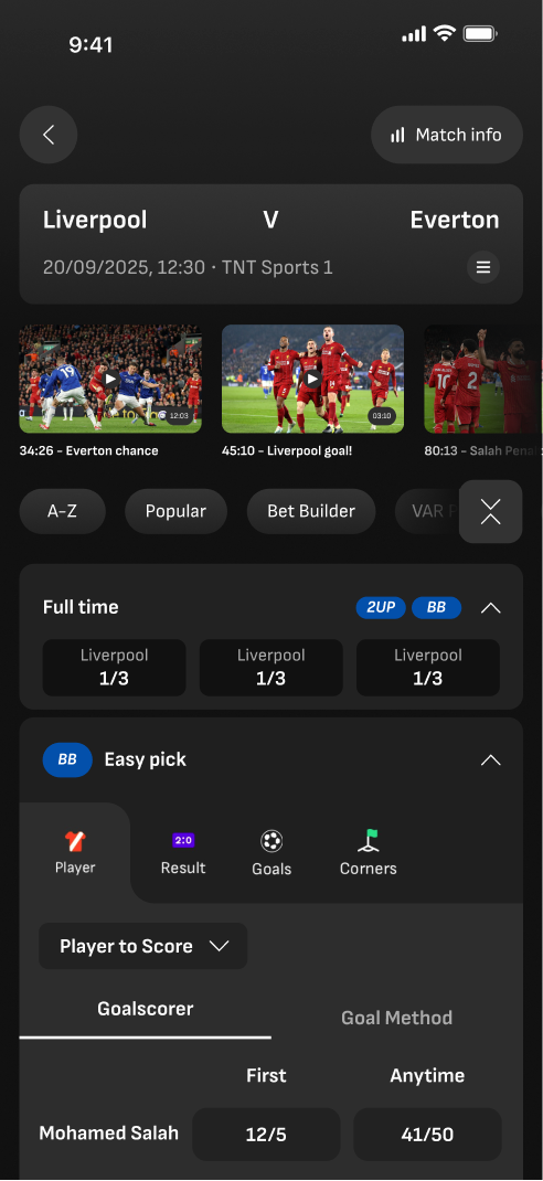 For this project, I focused on elevating the digital matchday experience by designing a new feature “Micro Highlights”. These concise, contextual insights and videos guide fans through every stage of the game — from pre-match anticipation, to in-play excitement, to post-match reflection — transforming LiveScore Bet from a traditional betting app into a dynamic second-screen companion for Premier League fans.